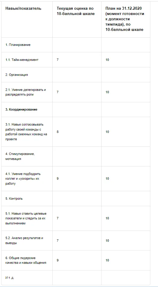 Постройте укрупнённую дорожную карту — в каком состоянии ваши навыки сейчас и до каких показателей вы хотите их улучшить, чтобы добраться из точки A (текущей квалификации) в точку B (к желаемой должности тимлида).